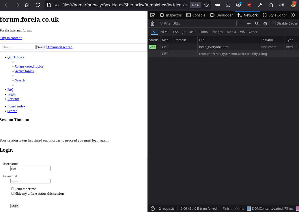 The post was just some malicious HTML. It pretends your session is expired, prompts for login, then shows you the “real” post after submitting the form.