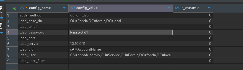 HTB asks us about an LDAP password. I havent seen any, so I search the DB: